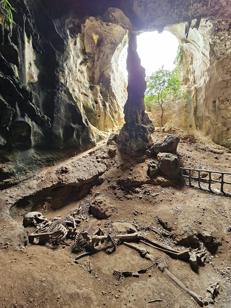 Probably the most memorable part of the river tour for me was exploring the Khao Khanab Nam cave. The scenery is quite striking as you enter for the first time. Through your admiration of all the stalagmites and stalactites you might fail to notice the giant human skeleton on the ground – I know I did and only noticed it when a fellow traveller pointed it out! She seemed to think it was real, claiming that humans used to be that big (the skeleton must have been at least 10-15 feet tall) but I have my doubts. Still cool to see though.