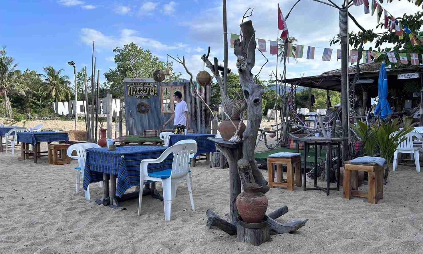 Black Rose Cafe is a bit of dive bar by the beach with its own unique quirky charm. They have a good selection of drinks and food including 90 baht cocktails (as of June 2023) during happy hour. Definitely consider relaxing here for a drink by the beach either before or after going up to the viewpoint.