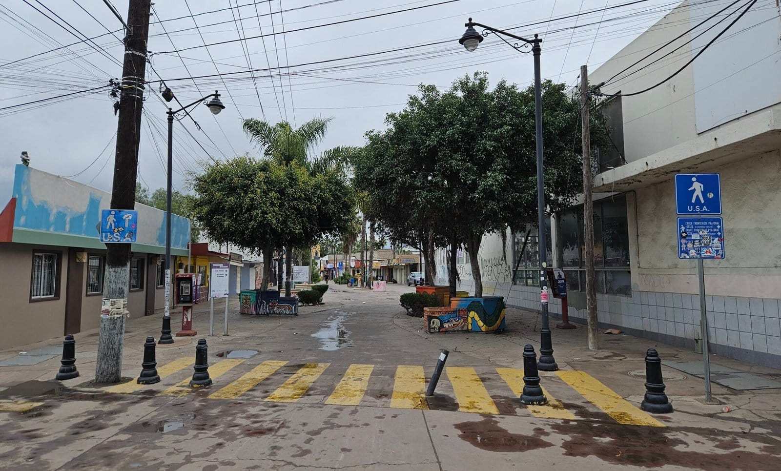 The whole walk from the Tijuana arch to the border crossing takes just 15-20 minutes, and is along a well sign-posted, mostly dedicated pedestrian pathway with trees and shops on the side. Although when I went in late December 2023 most of the shops were closed, perhaps due to the holiday period.